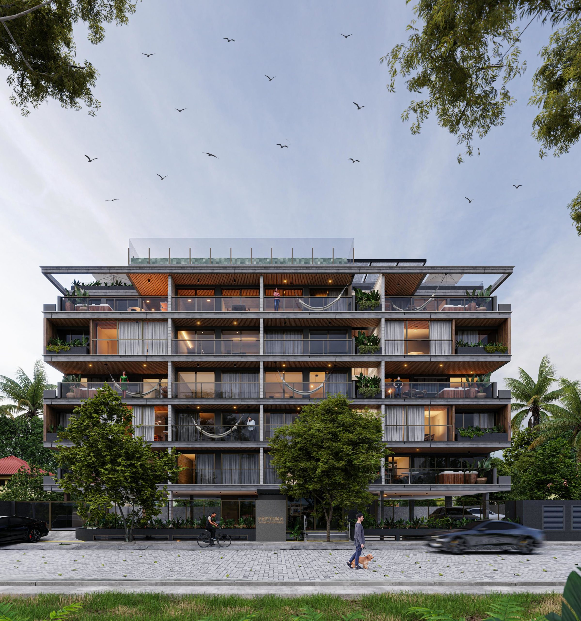 Com localização estratégica — a poucos metros da praia e próximo à rua dos restaurantes mais tradicionais da região —, o Ventura aposta no equilíbrio entre privacidade e conveniência. São unidades compactas, funcionais e mobiliadas com assinatura da Eviva, além de rooftop com piscina de borda infinita e vista panorâmica para o mar. “Acreditamos que o empreendimento sintetiza o que há de mais atual no viver contemporâneo: plantas inteligentes, design limpo e integração com a natureza”, afirma o arquiteto Tiago Angeli.